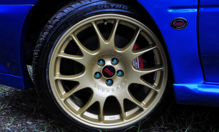Wheels fitted are original forged BBS CH (Challenge) of size 5H 100 - 18 x 8.5 + 30. These are custom finished in Gold, to the exact shade of 22B originals and are completed with STi center caps too. As pictures show, they're a perfect fit and very similar to the original 22B wheel design, but are more aesthetically pleasing, being 1 inch larger diameter than the originals & their offset better suits the wide body design than the more inset originals. New performance tyres are fitted. Brakes & suspension are original STi Spec, same as found on a 22B, also.