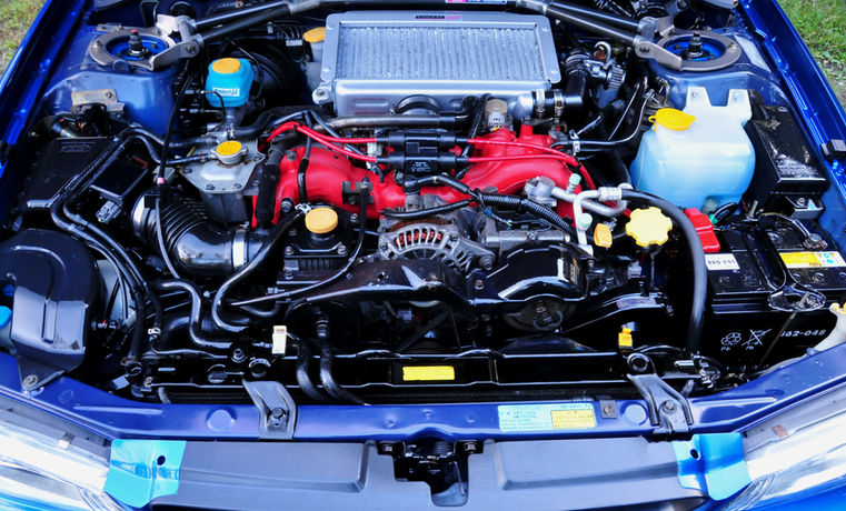 Red topped engines from this era were largely hand-built by Subaru Technica International, to provide a factory balanced and blue-printed quality that could withstand the rigors of 280 bhp & 260 ft.lb being summoned day after day, by enthusiastic owners. On these Type R 2 door models, the centre differential was adjustable, allowing the driver to select up to 70% of drive to be fed to the rear wheels. This enabled understeer to be dialled out and in return, some oversteer to be introduced, to help with cornering even quicker than the lesser enhanced examples from STi. Note also the gear ratios were closely stacked, which gave a more urgent and competition feel to the drivetrain.