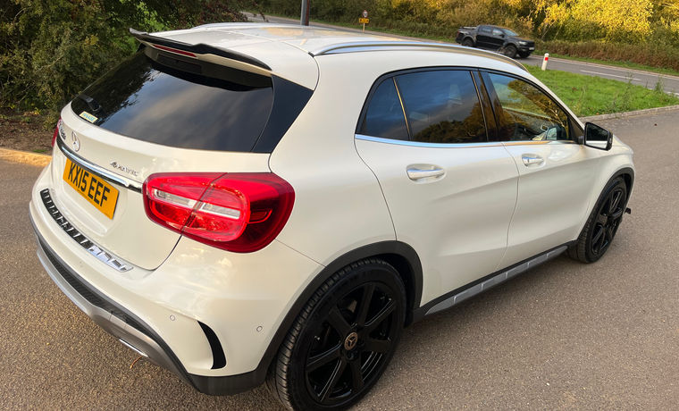 During this first generation the GLA250 offered the compact-SUV practicality with a reasonably powerful petrol engine; the “AMG-line” package (on non-AMG models) typically meant visual/styling extras, sporty bodywork and trim