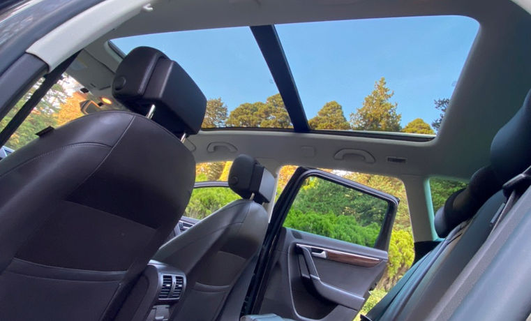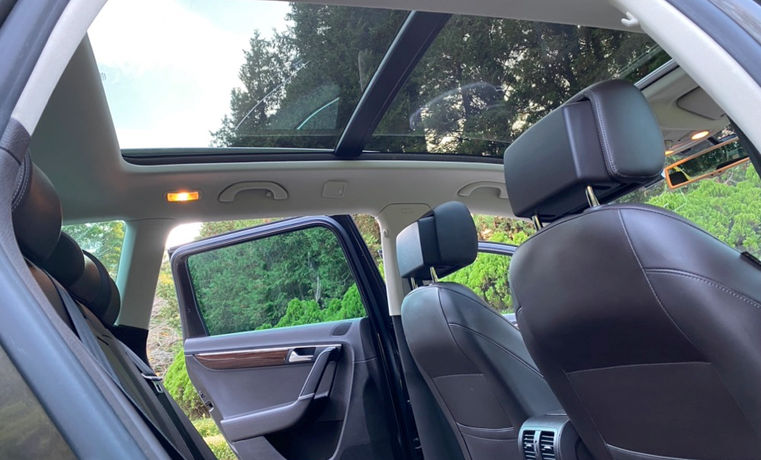 The panoramic roof makes this car a great place to sit, for both the driver & up to 4 other adults - in comfort. There are no squeaks, rattles, nor any broken electrical items or trim. The only forms of (minor) wear we can report is to the driver's floor mat and the vertical right seat bolster. See pictures which show interior condition throughout.